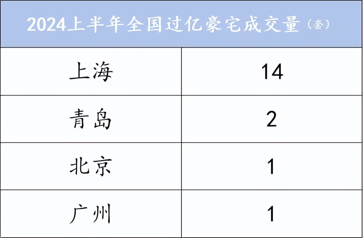 一直以来全国总价能过亿的超级豪宅城市本就不多,四个一线中也就上海和广州稍微多些