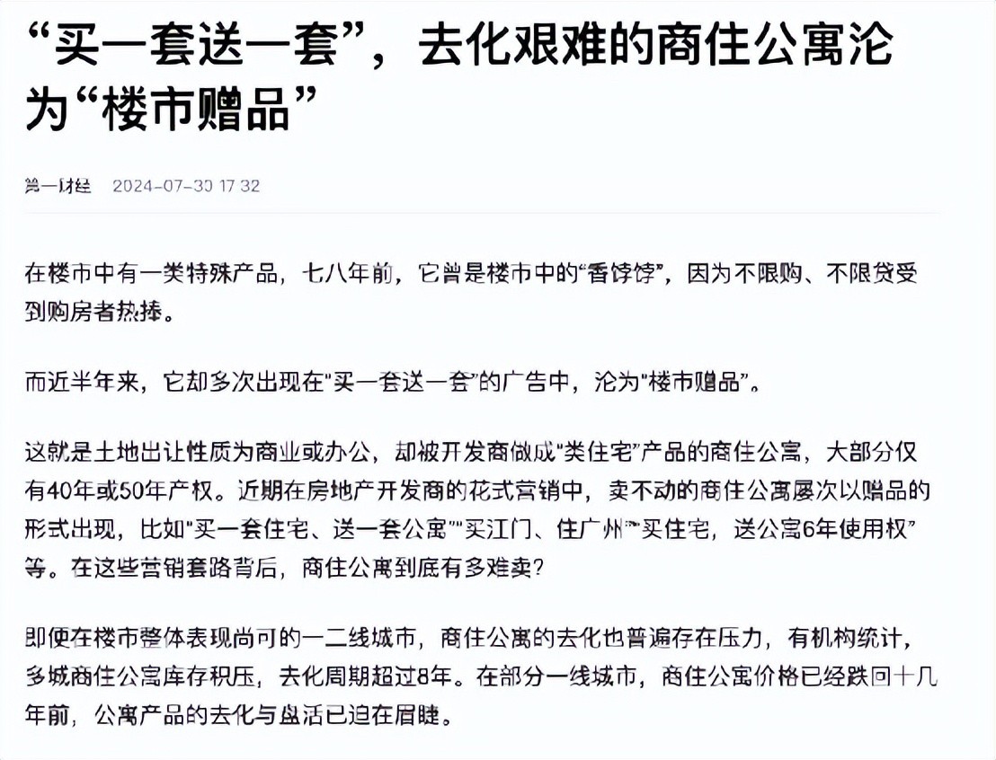 《“买一套送一套”,去化艰难的商住公寓沦为“楼市赠品”》