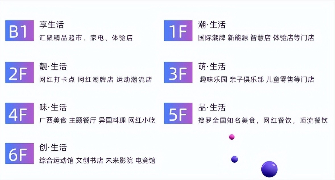 1F-2F布局国际潮牌、网红潮牌、时尚精品、新能源、智能科技、人气美妆、网红打卡点、运动潮流店等。