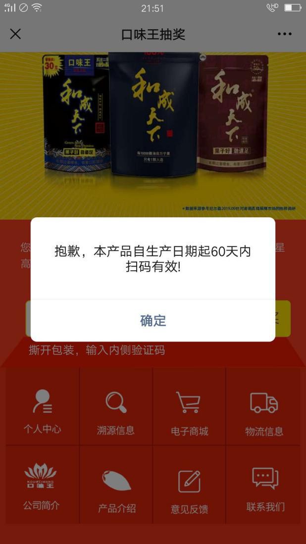 份量少于有奖 扫码抽奖“过期”