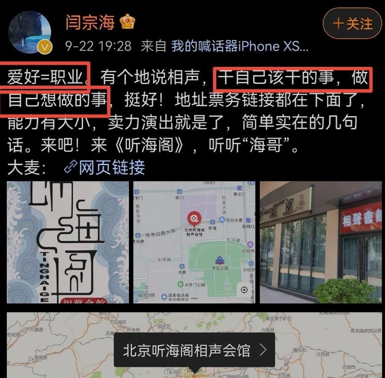 只是听海阁的生意确实不尽人意,一场演出下来,10个演员8个观众。甚至有段时间,闫宗海无奈之下把相声改成了脱口秀。