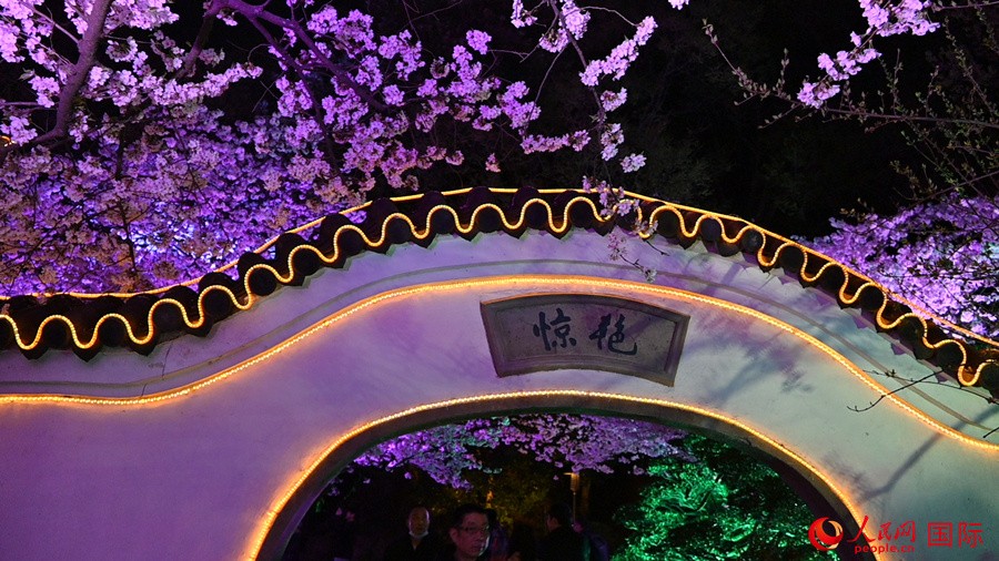 灯光照射下,樱花别有一番风姿。人民网记者 徐祥丽摄