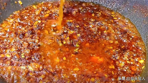7.接着倒入调好的料汁,继续炒出酱香味。