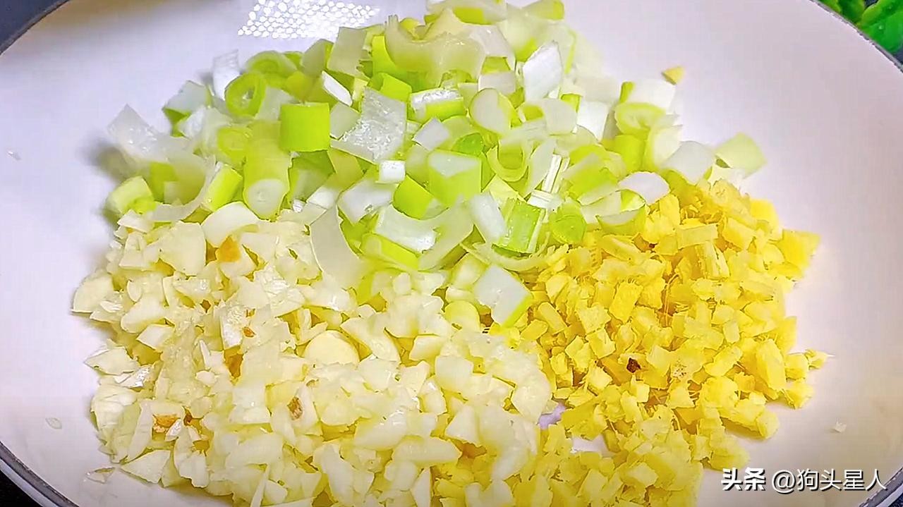 3.切点大蒜生姜大葱末备用。不喜欢生姜的可以不加,它主要是去腥增香的。
