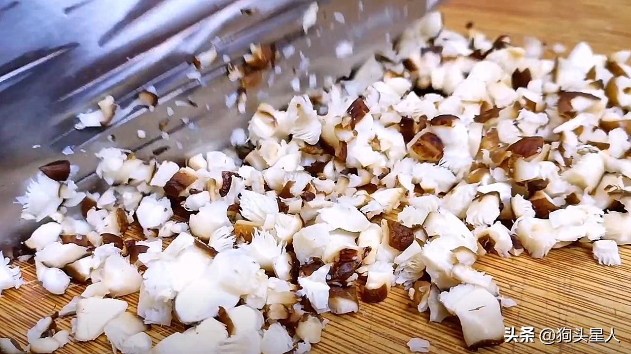 2.切点干香菇或者鲜香菇,切碎备用。干香菇比较香。