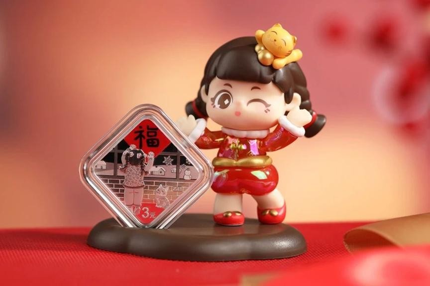 当传统文化被不断推崇和追捧,具有文化象征的产品越来越受欢迎,比如新中式服饰,地标文创就刺激着大众的购买热情。在这种文化消费的滋生下,以2025贺岁币为主题的手办和系列盲盒被创造了出来。