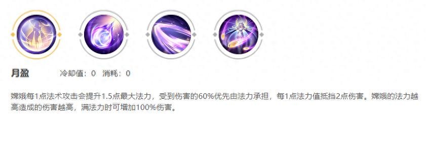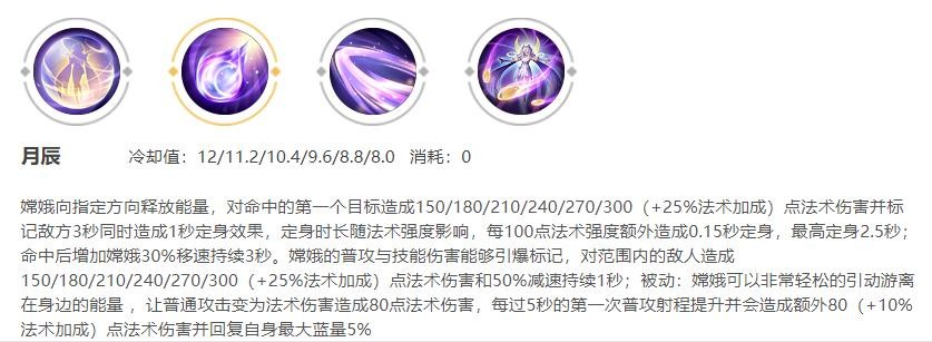 其实从嫦娥的被动技能我们就能看出嫦娥的技能机制相对来说会比较多,每个技能都有多个技能属性。让我们仔细的解析一下。